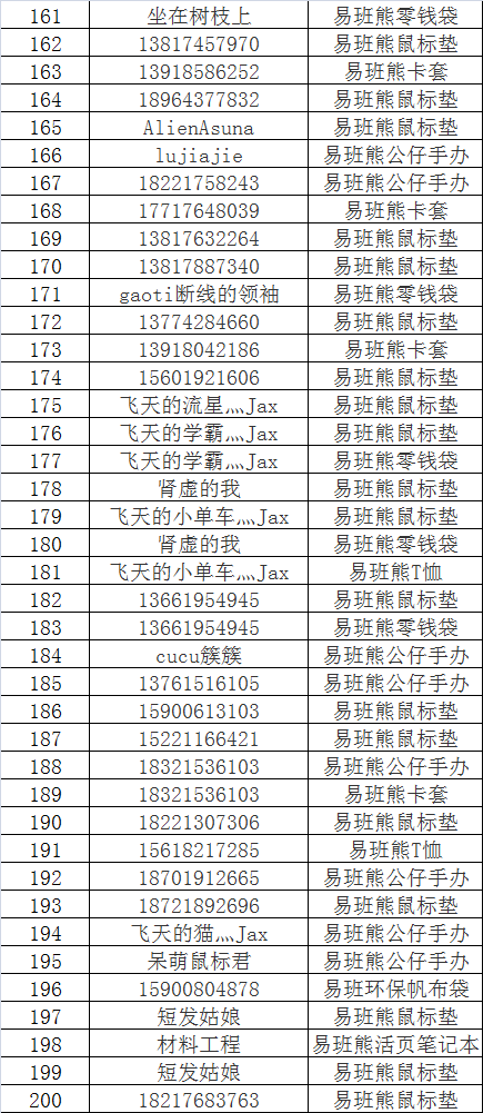 下面就公布本次专题抽奖活动的中奖名单,请各位同学于12月30日后至各校工作站领取!