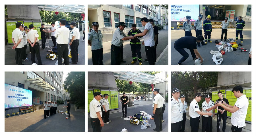 新学期开学第一天,校区就组织保安、物业维修人员和宿管阿姨进行消防报警器实操训练,提高他们的安全意识和安全技能。开学第二周,校区就组织保安人员进行微型消防站技能培训,提高他们对微型消防站设施设备的应用熟练度。