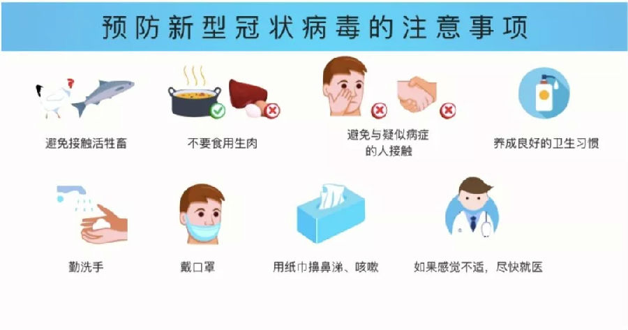 2.注意个人卫生习惯,做好安全防卫。如勤洗手、出门戴口罩、避免接触活的牲畜,等等。