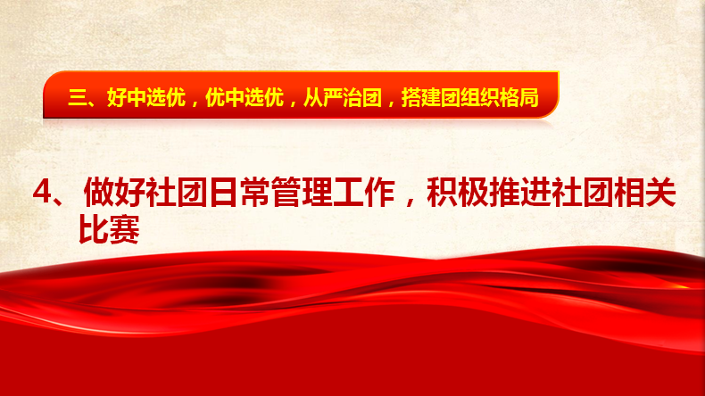 4、做好社团日常管理工作,积极推进社团相关比赛。