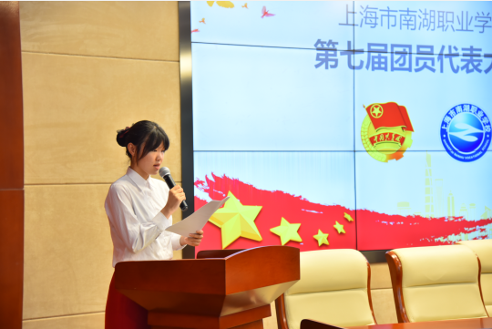 2020年6月17日,在雄壮的国歌声中,共青团上海市南湖职业学校第七届团员代表大会在文化中心一楼会议室隆重召开。