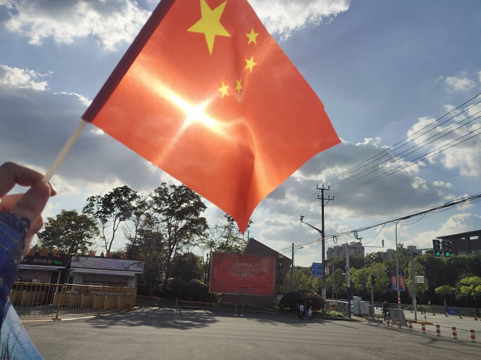 不知不觉这已是祖国71周年的华诞。照片中的这天,天公作美,蓝天白云,太阳高挂,漫步街边的我身着汉服、手执小国旗,让历史与现代进行了一次碰撞。在耀眼的阳光下,小国旗更加闪耀,似乎也在为国庆祝。在街角荧屏看到庆祝国庆的标语,那就让国旗和我们的祝福同框出现!有着不同兴趣爱好的我们,也许当时身处在不同的地方,做着不同的事情,说着不同的话语,但我想有一点相同的是——你我都在心底,由衷的祝贺祖国71周年生日快乐!