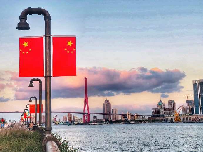 2020年是全球最难的一年,疫情的风靡,经济的萎靡不正,全球好像按下了暂停键,因为这次疫情,我也深刻意识到祖国是一个团结的集体,也理解了什么叫一方有难八方支援,疫情这种环境下,中国也迎来了重大的节日国庆,今年的国庆与往年的不同,很多地方都有随处可见的中国的国旗,也让我感受到了祖国的强大,这张照片来自于上海,首先我拍这张照片的原因是想感慨一下中国这几十年发生了翻天覆地的变化,因为祖国我们的生活也发生了翻天覆地的变化,从以前的粮食匮乏,到现在家家户户都能吃上肉,让我心中由衷的感觉到祖国有多么的伟大,也让我深刻的体会到了聂鲁达的一句话“祖国更重于生命,是我们的母亲,我们的土地”为了守护好我们的土地,我也愿意为祖国出一份力量。