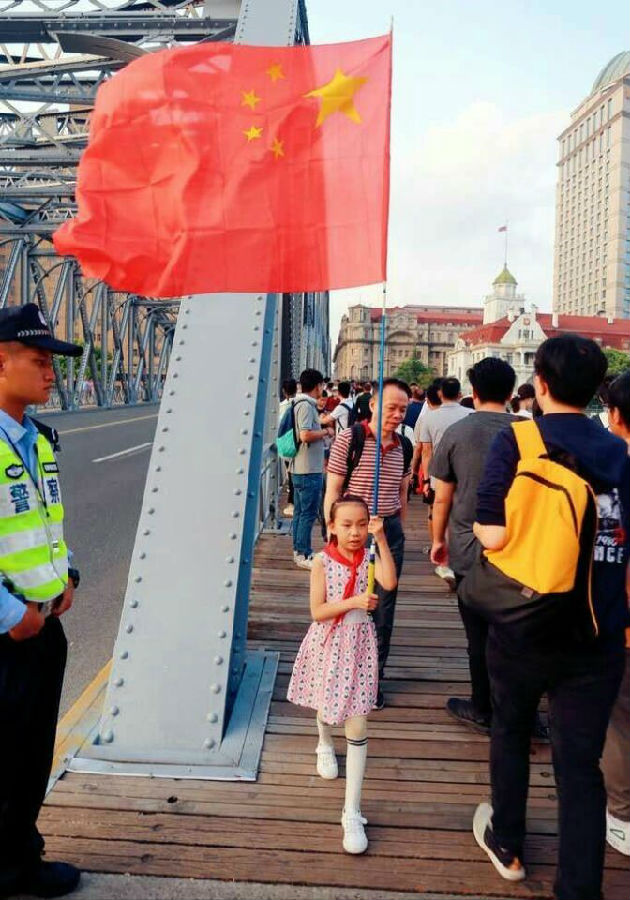 26. 《金秋十月,举国同庆》金秋十月,举国同庆祖国华诞。新冠疫情之后,我们的祖国更是取得了防控疫情和经济恢复的双胜利。上海和祖国其它地方一样,也迎来了众多来自全国各地和本市的游客,大家尽情欣赏祖国大地上的美丽景致。瞧,一位小姑娘在外白渡桥的人行道上手举国旗,健步如飞。她的心里,装着全国人民共同的心声:祖国,我为你庆生,我为你感到无比的自豪!