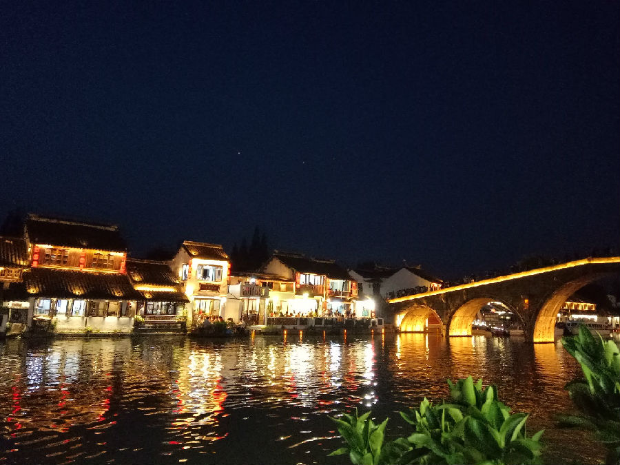 21. 《朱家角 》这张照片的景象是来自朱家角,它有着悠久的历史,那你有一排排古老的房子,一座座小桥,我们慢慢的看着夜晚的风景,站在河边吹着凉风,一路走着走着看到每户饭店几乎都坐满了人。我们一边在河边走着,一边拍着那美好的夜景。走了好一会儿,我看见有长沙臭豆腐,油墩子,咸猪蹄,还有那清凉可口的椰汁,我就忍不住流口水。我心想真想把这镇上所有的美食都吃个遍,啊,这真是一次开心而又美好的旅行啊!不仅让我感受到朱家桥的历史悠久,还能让我感受到那美食是那么的迷人啊!