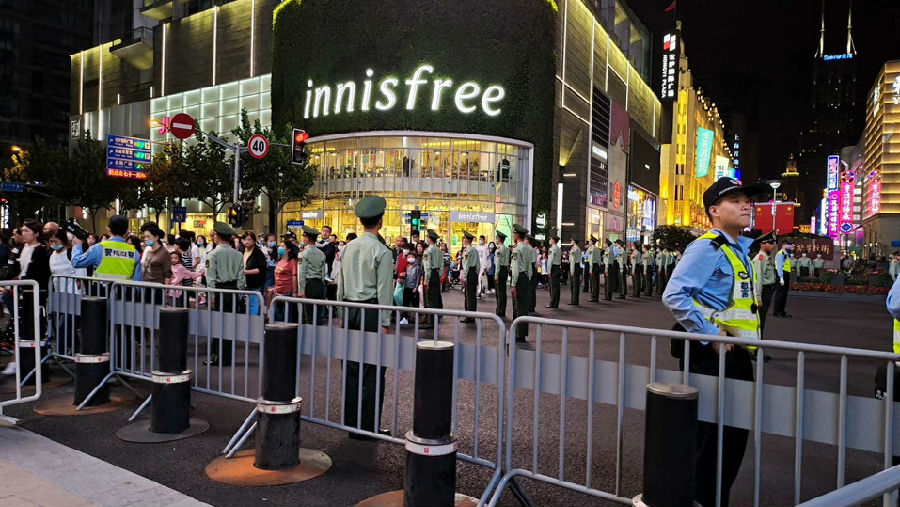 38.《至无私奉献的人们》 有空去了一趟繁华的南京西路,真值国庆期间,街上人来人往热闹非凡,灯光大秀,不仅仅只有东方明珠等新建筑散发着喜悦的光芒,和平饭店等老式建筑也散发着专属于国庆的气息。 可是在这样热闹非凡的街头,我却看到了截然不同的一幕:成排成排的“兵哥哥”们尽然有序的听着哨声指挥不断变换着队列,保证街头的秩序。 在这个阖家团圆喜气融融的国庆,却有这么一群人放弃了陪伴家人的机会在街头执勤。正是因为有这么一群舍小为大的人们,才保证我们会有一个祥和的国庆