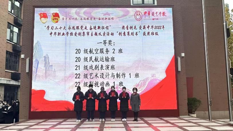 在我校在1122日举办的 “学习二十大 永远跟党走 奋进新征程”——团青创先 爱薪中华2022年中华职业学校爱创集市主题义卖活动“创意策划书” 活动中,各个班级大显身手,尽数彰显中华风范,让青少年从内心深处厚植对党的信赖、发挥自己所学专业特长。