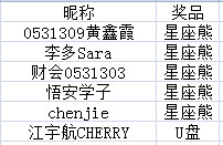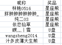 “易”起来许愿活动结束了,很多同学在活动中抽中了丰厚的网薪奖励,更有一批幸运儿获得了星座熊公仔和U盘等精美奖品!他们是: