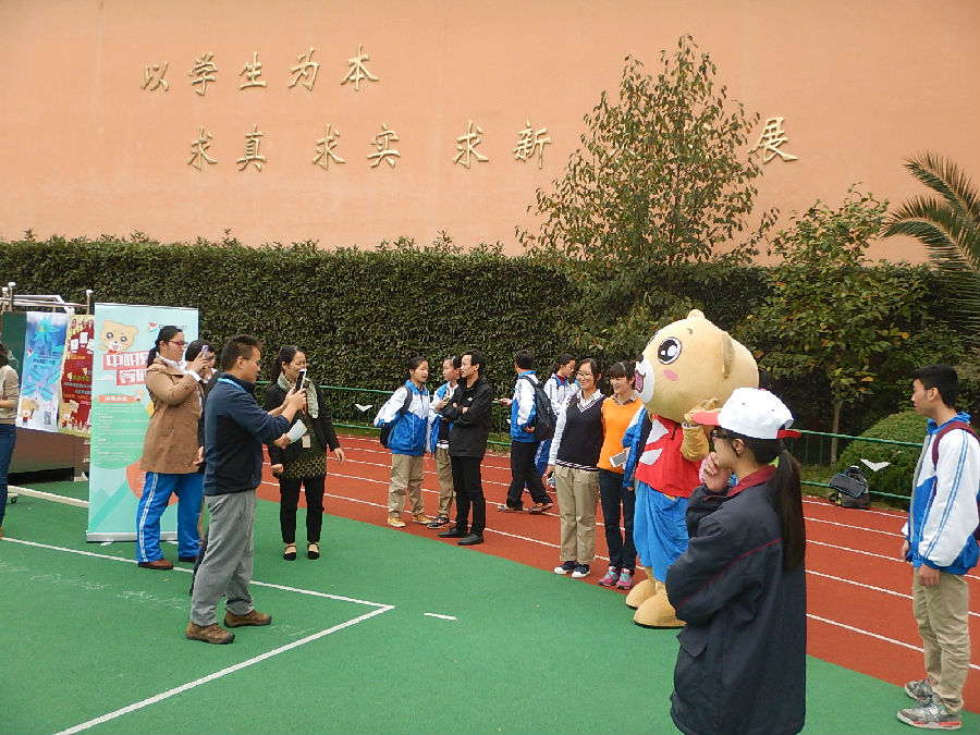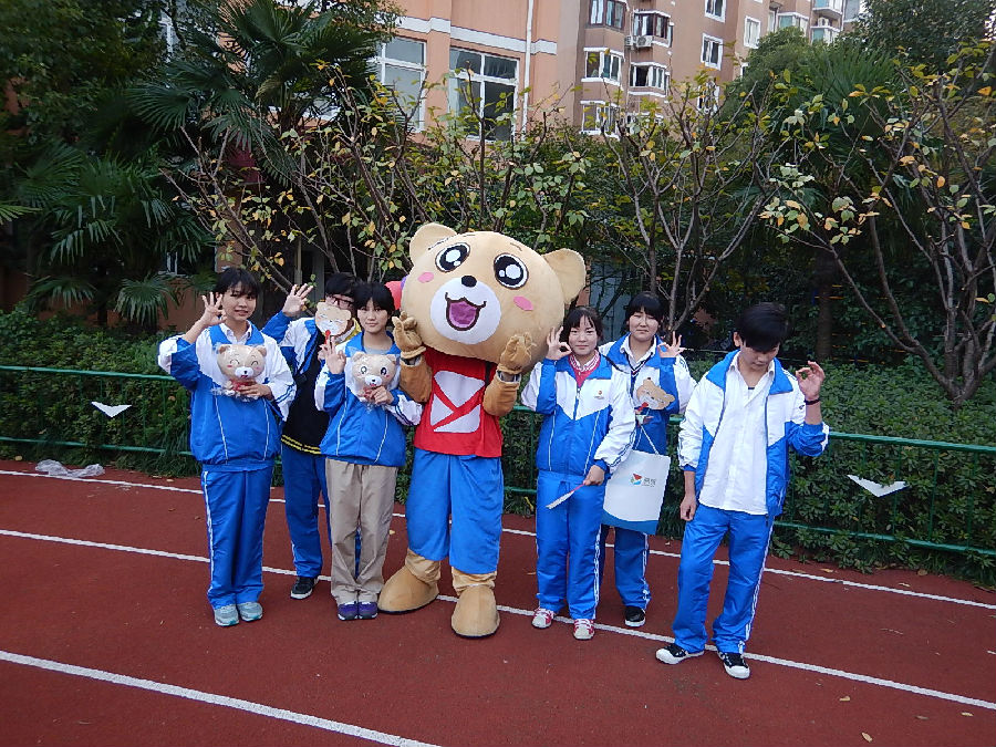 图二:活动开始后,大家围绕易班熊吉祥物合影